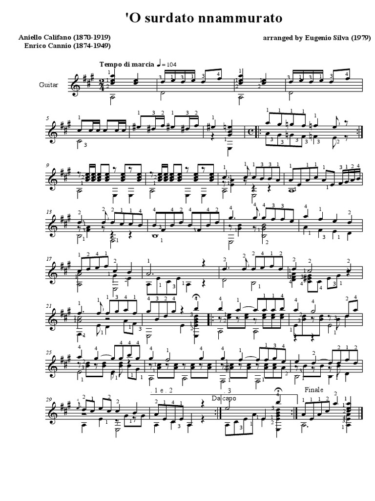 Accordi O Surdato Nnammurato : 'O surdato 'nnammurato - Wikipedia : Staje luntana da stu core, a te volo cu 'o penziero:. Includes transpose, capo hints, changing speed and much more. Una delle più famose canzoni napoletane di tutti i tempi (1915) in un mio arrangiamento per chitarra classica basato sull'arrangiamento per chitarra e voce. O soldado apaixonado (samba di 'o surdato nnammurato). Влюблённый солдат / o surdato 'nnammurato (э. Si' sicura 'e chist'ammore comm'i' só' sicuro 'e te.